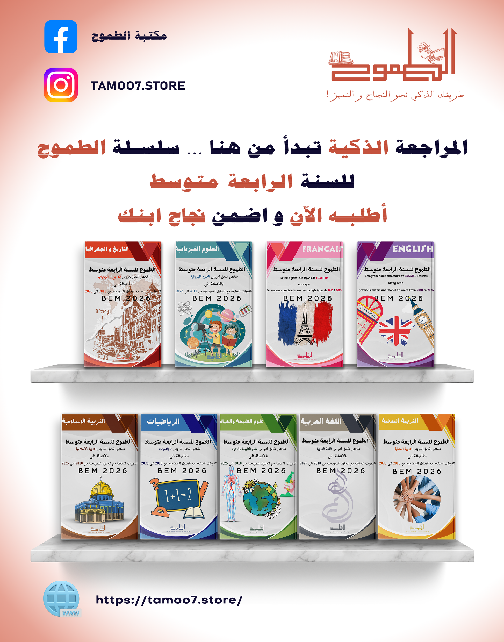 📘سلسلة الطموح 9 في 1، كل ما يحتاجه تلميذ السنة الرابعة متوسط🎯باش يكون من الناجحين!